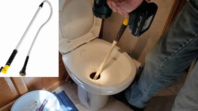 When replacing a valve on a black tank, how to you make sure you don’t have streams of stinky stuff running out? You buy a tank cleaning swivel stick. When you are dumping the black tank, get out your swivel stick and attach a water hose, turn on the water, and the spinning sprayer at the business end of the stick will wash all the stinky stuff off the tank walls and down into the dump station. Better in the dump station than on you!