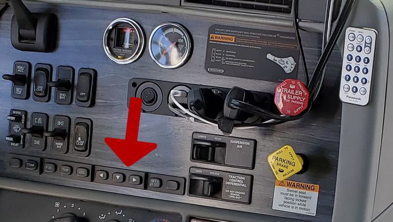 The second issue was on the dash. I have an eight switch array that controls many things. From the trip odometers to the diagnostic screens to the engine information etc. The switches were starting to stick and/or not make contact when pressed. Remember this is a 16 year old truck. But since it is a truck, we called Tracy Road Equipment, the local (to home) Freightliner dealer, gave them the VIN, presto… switch array on order.