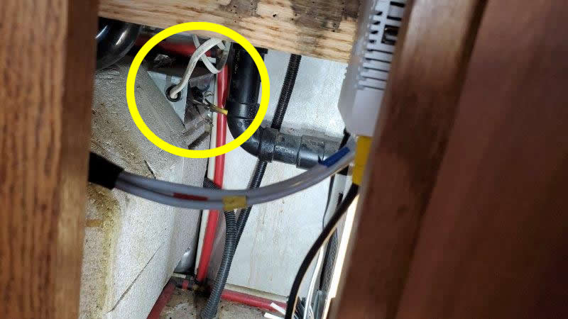 Inside, the water heater is located under the kitchen sink. Soon, Jim was on the floor removing the components in the way, including heating ducts and other wiring harnesses, to get to the junction box where he thought the wires from the inside switch met the wires from the outside switch.