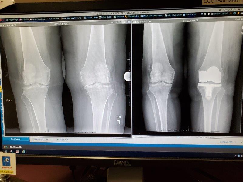 I saw a knee orthopedic doctor as soon as I could and received the startling news that I needed a full knee replacement. What???? In the past I had been told I had arthritis in my knees, but no one ever said the words “knee replacement.” It was a total shock. I received a cortisone shot and the replacement was scheduled for February 8 with an excellent surgeon.