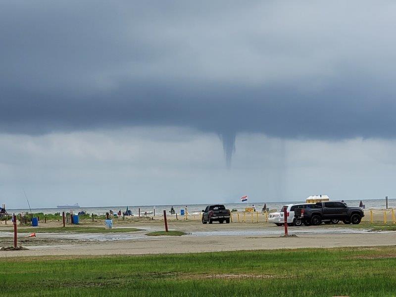 We had a storm roll through one afternoon while Mary Ellen and I were on the East end of the island. A notification came through on my phone about waterspouts in the area. I gave a call back to the campground, and Jim, Doug and Leola got to witness a waterspout right off the shore of the campground.