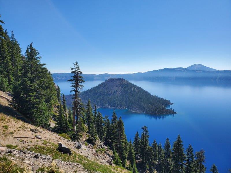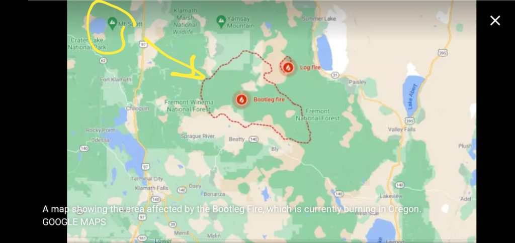 Jim was feeling well enough to play tourist, so we got that message just as we were entering the park. Alas, Crater Lake was in the vicinity of the Bootleg Fire.