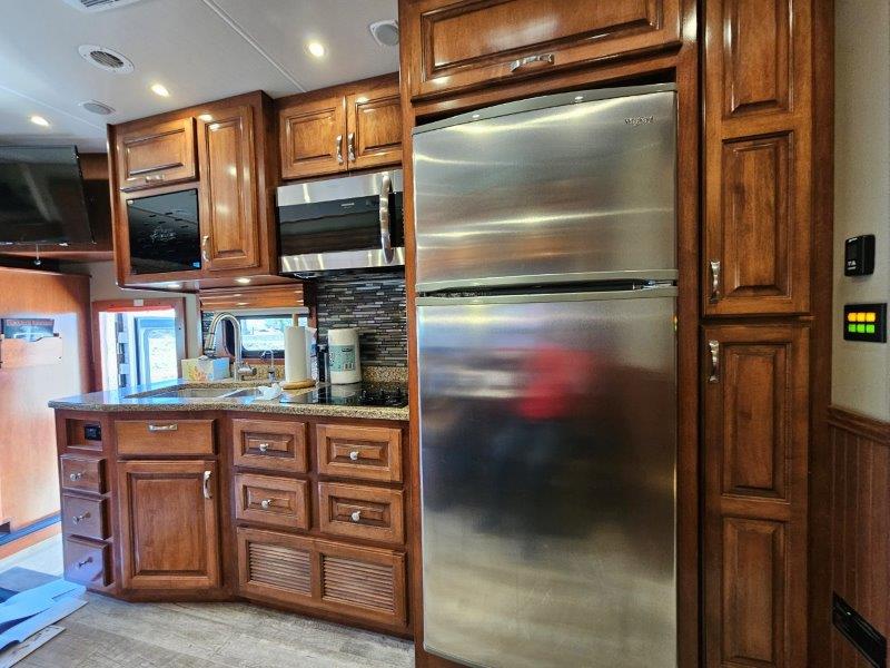 Sandy has three slide-outs. One in the main living area and two in the bedroom. It has a convection microwave, so I have a semblance of an oven now. The refrigerator is a residential model (ice cream will now stay frozen!). And it still has an over-the-cab bunk (aka the kid’s room).
