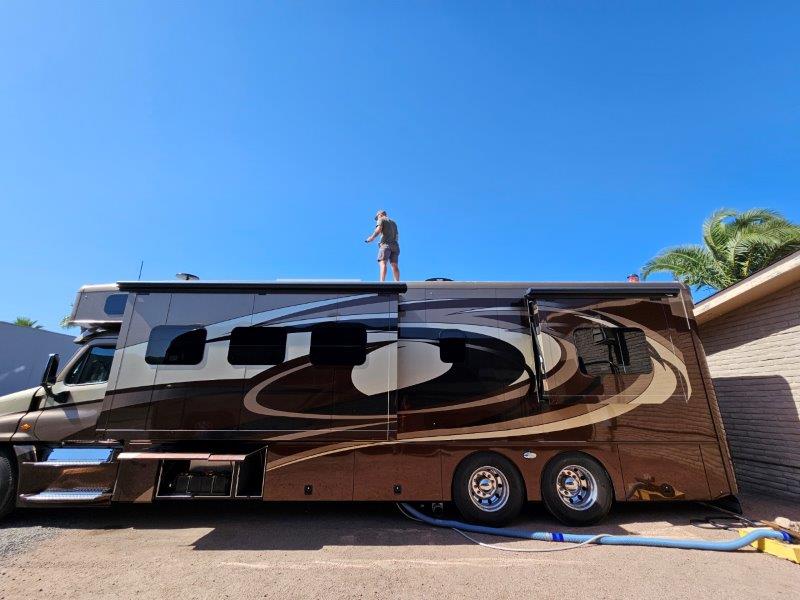While in Phoenix, we contacted a solar installer. He is going to get us quote on solar panels and lithium batteries. This rig has a residential refrigerator, so it requires 110 volts all the time. We need the extra solar and batteries if we want to boondock the way we like to. There is currently 2 solar panels on the roof, but that is not nearly enough.