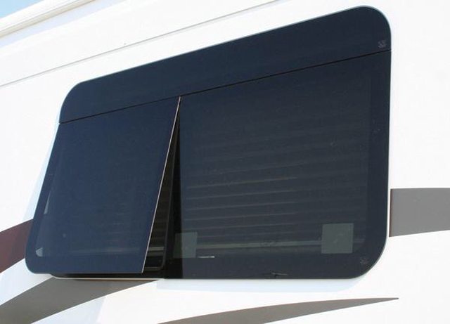 They are hinged along a horizontal edge at the top and there is a crank mechanism attached to the bottom edge of the window to open it. That mechanism is adhered to the glass with glue. Well, the glue gave out on three of the windows. Yikes! This was not a surprise, we knew they had issues and we thought we had them secured for the trip home. But apparently not. Having a glass windows flapping in the breeze while going 65 miles per hour is not fun.