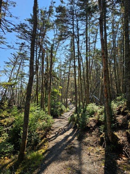 This is a trailhead on the Appalachian Trail at the State Park. Janelle decided to climb to the top of this hunk of rock, called Old Speck Mountain.