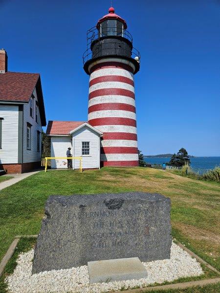 West Quoddy Head Lighthouse (still in service) and a granite marker stating this is the eastern most point in the USA.