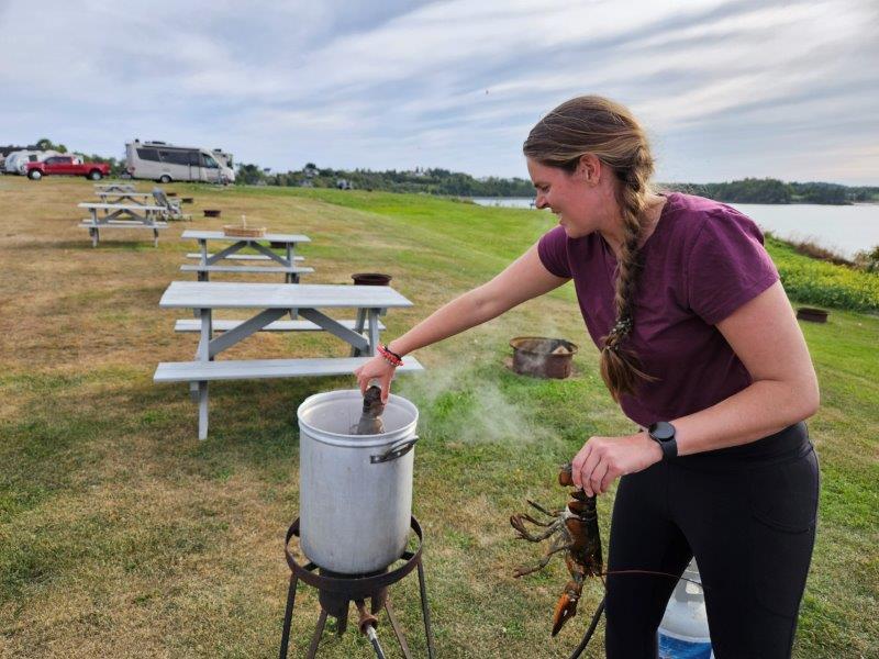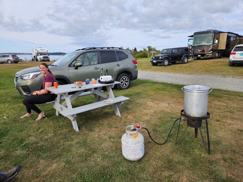 One of the unique amenities of this amazing campground we stayed at is they will provide to you for FREE everything you need to cook lobster…the propane, the burner, the pot, big plates and all the crackers and forks. Count us in!
