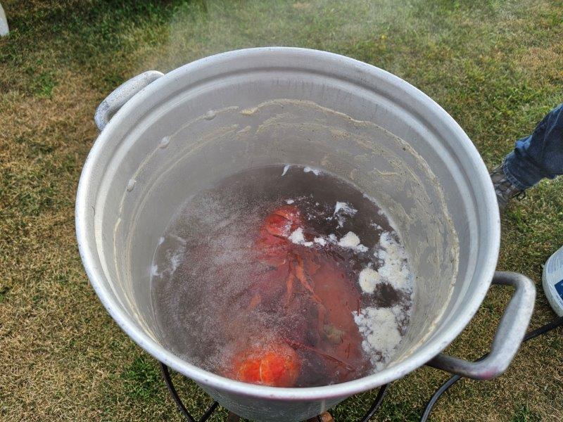 Here we have our lobster setup. It was amazing that this was provided for free. All we had to do it buy the lobster from the wholesaler down the road. Well, that and watch a few YouTube videos to see how to cook lobster. Yes, we have never done it before.