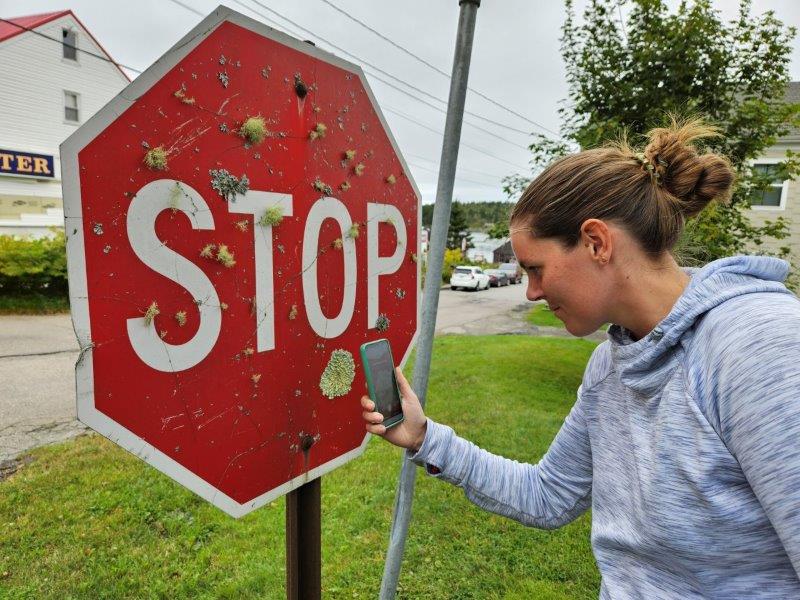 While walking in town, Janelle spotted a stop sign covered with lichen and had to check it out. Of course she had to.