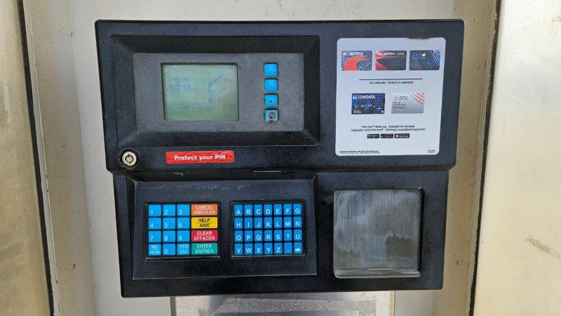Driving the RV thousands of miles of course means you need to put diesel in it, lots of diesel. In the USA, we typically use truck stops (Love’s, TA, Pilot, Flying J). In Canada, you use what is called a cardlock. They are standalone fuel pumps in the middle of nowhere. There is not a store associated with them. And they don’t take credit cards