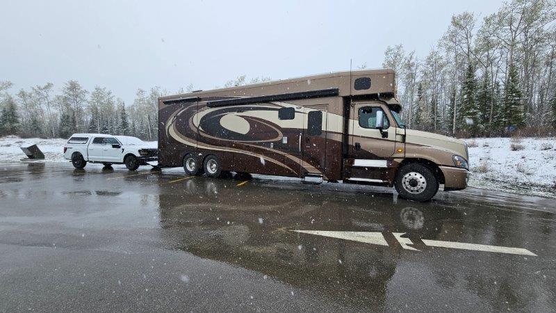 We were prepared for all of this just in case we ran into issues on the Alaska Highway. Well, we didn’t even have time to get to the Alaska Highway before the first issue arose. BAM. A truck went by and kicked up a stone. You guessed it, we had a chip in the RV windshield and the trip was just starting.