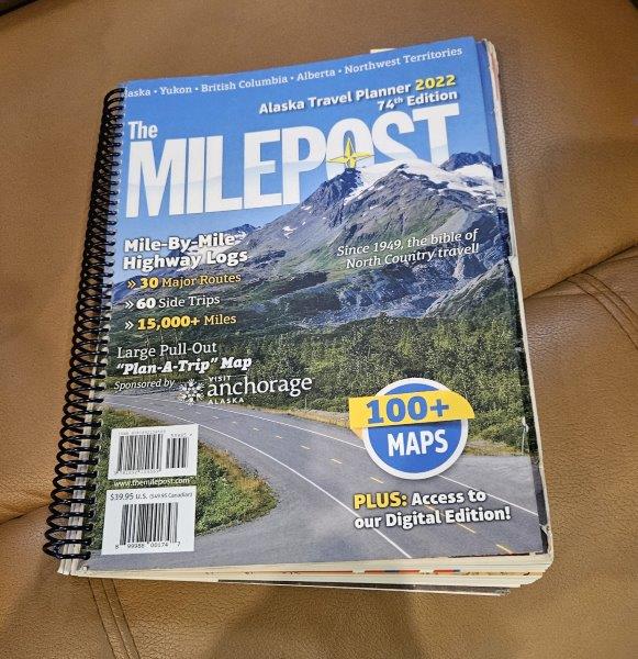 As you probably know, Canada uses the metric system now. So their mileposts are actually kilometer posts. In the Milepost guide, they count off your progress three ways: 1) actual miles, 2) historical miles (what the mileage was back when the road was originally built, currently it is 35 miles shorter because of rerouting and straightening curves, thus historical miles don’t match current miles) and 3) kilometers. I got pretty good at mentally flipping between miles and kilometers and was able to keep track of where we were.