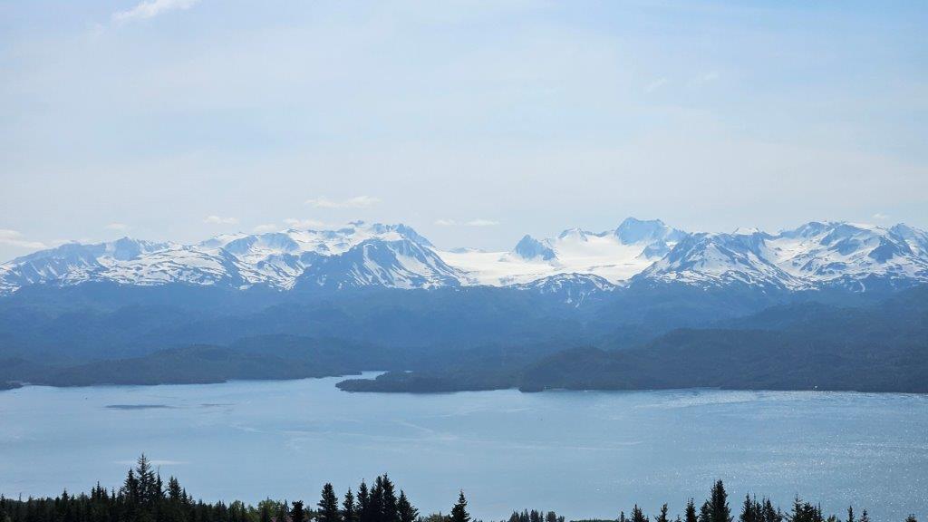 Our first full day, we decided to check out the surrounding areas. Across the bay from Homer is the other side of Kenai Fjords National Park with it’s multitude of peaks and glaciers. We took the highest road out of Homer just to see how it all looked. WOW!!!!