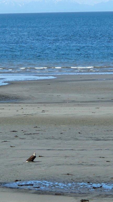 From our vantage point, you could see the gulls and eagles hanging out together. I counted 17 bald eagles on the beach at one time.