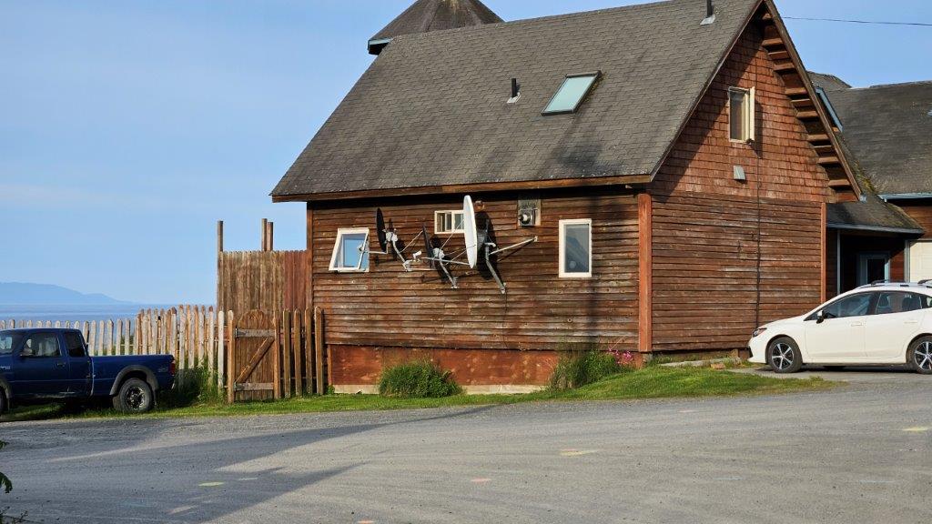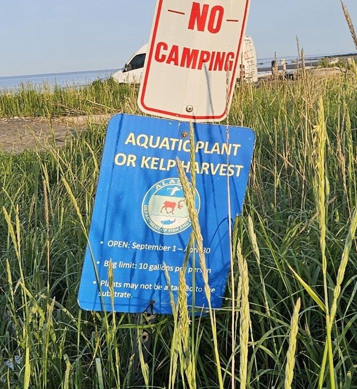 Kelp Harvest? 10 gallons per person? September 1 to April 10? Interesting. I did see kelp on a menu during our stay. No, I was not inclined to try it.That tower is a tsunami warning siren.We saw these signs in every coastal town we were in.There was a board walk in the salt marsh next to the beach. Cow Parsnips were everywhere! The look a bit like oversized Queen Anne’s Lace. But not big enough to be Hogweed.For those of us from the lower 48, this is not what one thinks of when you picture a television satellite dish on a house. Usually the dishes are pointed way high up into the sky. Not in Alaska, they are pretty much pointing at the horizon because all the satellites are to the south. In fact SirusXM Radio won’t work in most of Alaska north of Juneau, there just aren’t satellites visible due to the curvature of the Earth.
