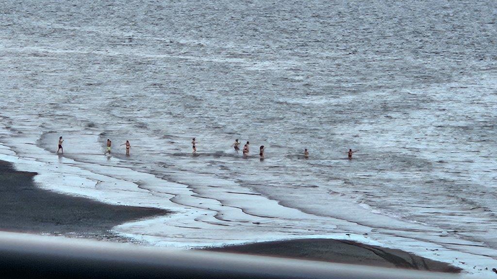 I tripped over this graphic on the Internet. Instead of 24 hours of daylight on the Summer Solstice, we’ll only have 19. It’s not really a big deal, we’ll still go to bed before sunset and get up after sunrise.While in the Elks Lodge the evening of the Summer Solstice, we spotted these crazy people doing a polar plunge into the Bay. The water temperature in the bay was reported as being 49 degrees Fahrenheit. Brrrr. I guess that’s one way to celebrate the start of Summer.We preferred to celebrate from inside the warm Lodge.