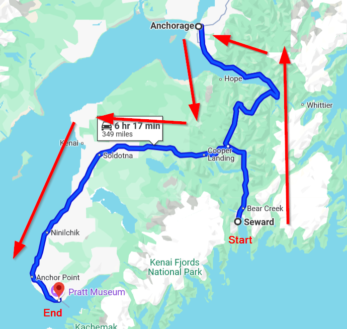 We had been making noise about being at the Arctic Circle on the Summer Solstice, June 20. However, with the way our destinations with Janelle got flipped around (due to weather) and us needing to be at an RV Rally in Denali State Park over the July 4th holiday, it didn’t make sense for us to drive the Parks Highway northward yet another time. It’s a lot of miles and fuel. So we stayed where we were…in the south. The Arctic Circle and Arctic Ocean are still on our agenda. It just won’t coincide with the Summer Solstice. We spent the Solstice in Homer instead. Not a hardship.