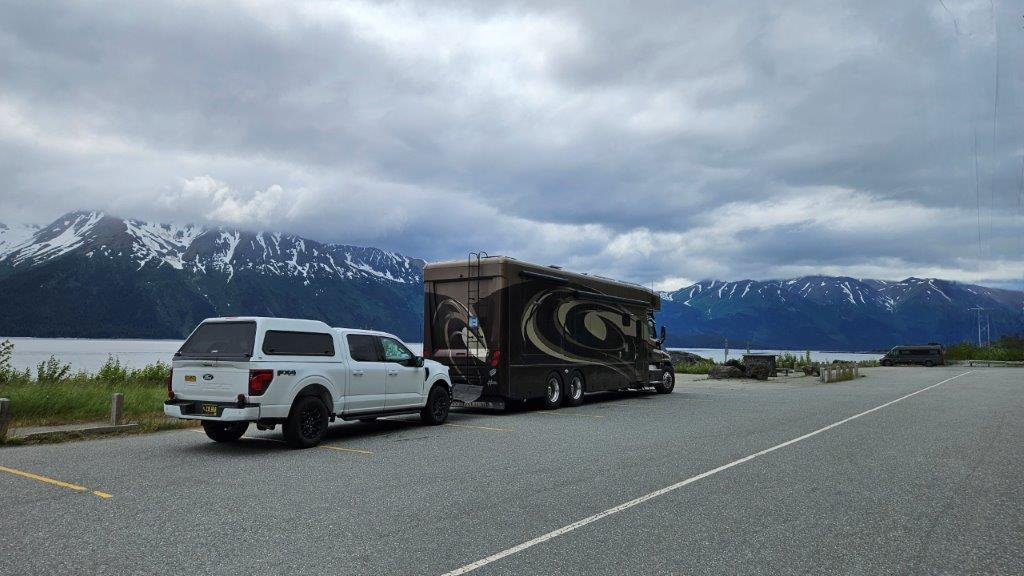 It was such a cool experience to view this event. We are very glad we planned around it. After a peaceful nice in the pull off, we headed out towards Anchorage and saw a few morning surfers out, even though the tide wasn’t as big. They are true diehards!