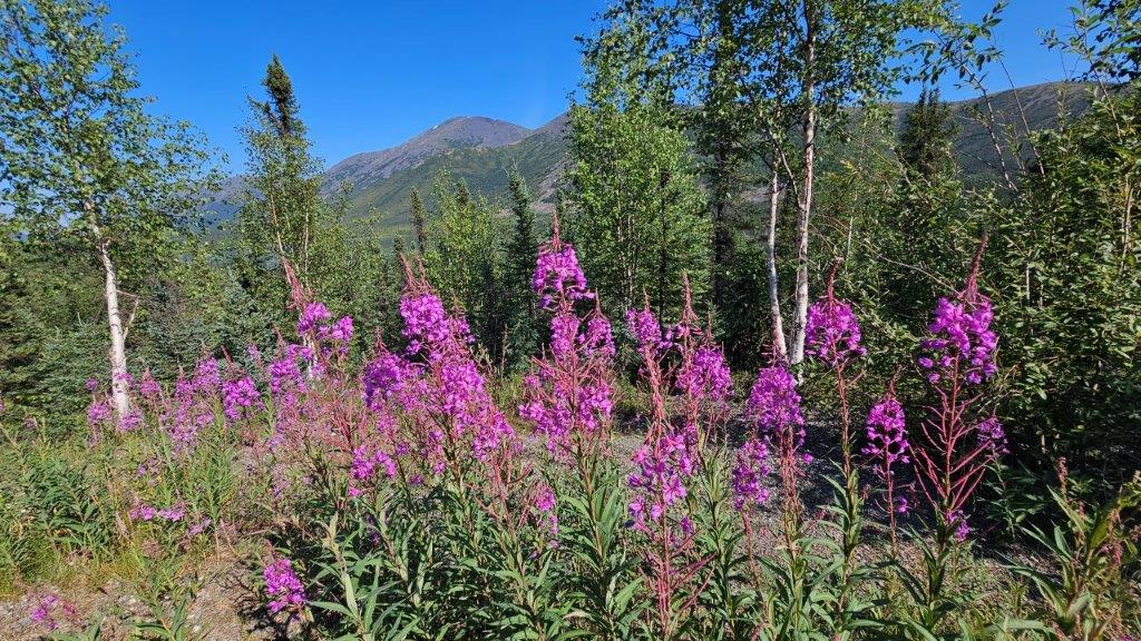Fireweed is a pinkish purple! So why is it called Fireweed? This wildflower is one of the first plants to appear in a burned out area. Hence, FIREweed! We are seeing it everywhere in July, not just in the burn scars. The plant can be used to make syrups, jelly, tea and ice cream. Who knew?!?