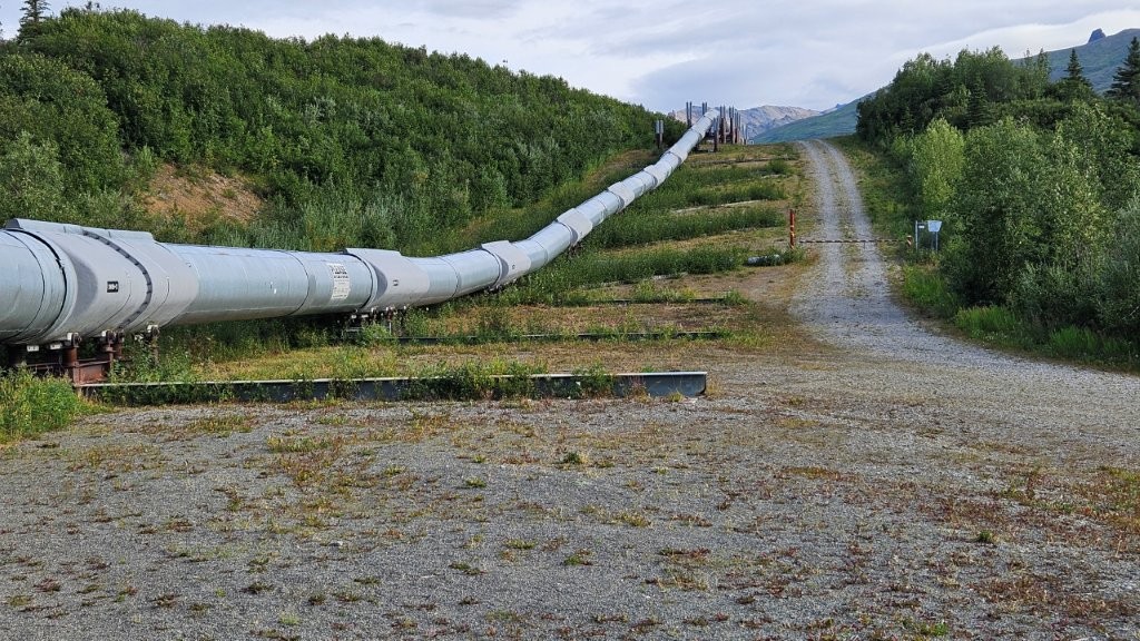 We then realized the pipeline/fault line was only 50 miles south of Delta Junction. So, we quickly decided to take a side trip that morning before we really hit the road.