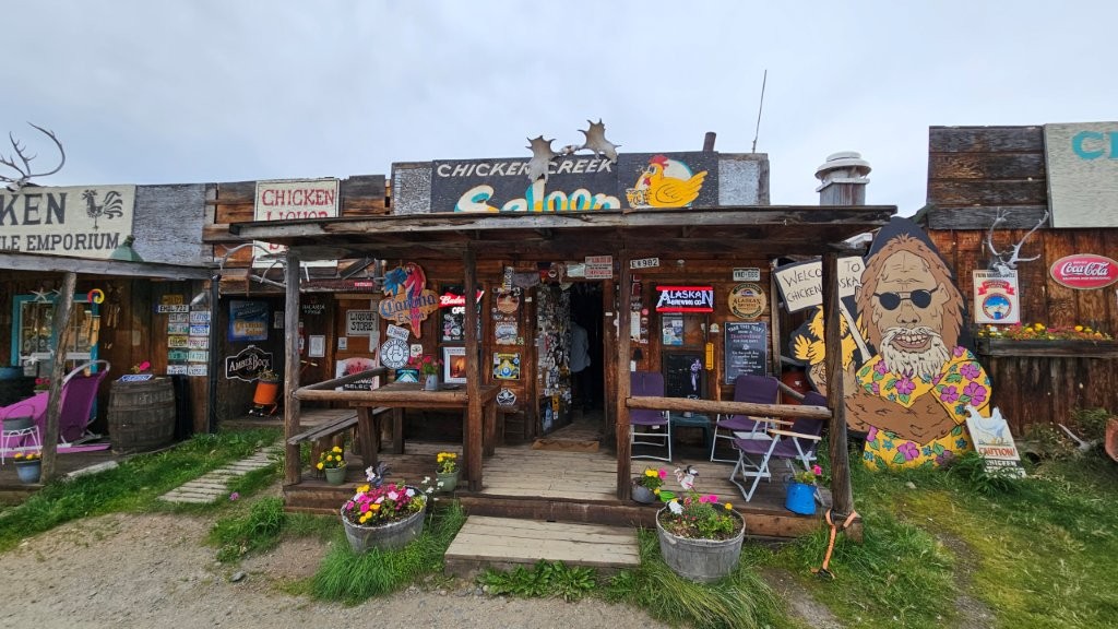 It was time to have some fun. Along the Top of the World Highway, is the VERY QUIRKY town of Chicken, Alaska. Chicken? Apparently the founding fathers wanted to call the town Ptarmigan (after a native bird), but they couldn’t spell the word. But Ptarmigans are the “chickens of Alaska.” So Chicken it was. Since then, it’s become a destination in Alaska, even though the population is only 17 year round. You’ll find more people there in the summer with the tourists and gold miners.