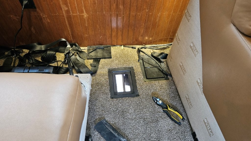 We now have recliners in the RV (installed last October to replace the awful jackknife sofa). Of course, the access opening to the lead screw was under the recliners.