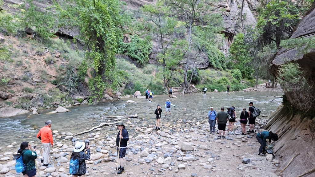 Have you heard of The Narrows? This seems to be why everyone comes to the Park, to hike further up the canyon in the river. Some hikers grab their water shoes and trekking poles and just go for it. There is an outfitter just outside the entrance to the park that will provided you (for a fee) with what you need to hike the narrows. I just peeked at their website to see the pricing.